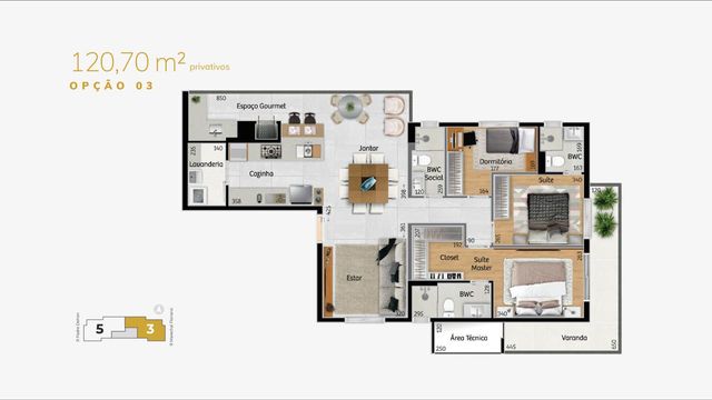 1 Suíte Master com closet e varanda privativa