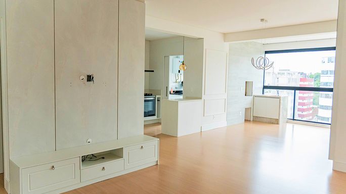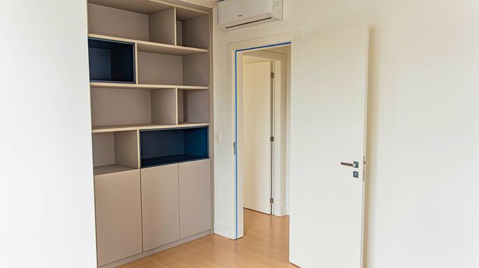 O living integrado à cozinha e à sacada com churrasqueira a carvão cria um ambiente perfeito para receber amigos e familiares. As janelas dos quartos possuem persianas e o imóvel conta com infraestrutura pronta para ar-condicionado split e aquecimento a gás, oferecendo ainda mais comodidade.